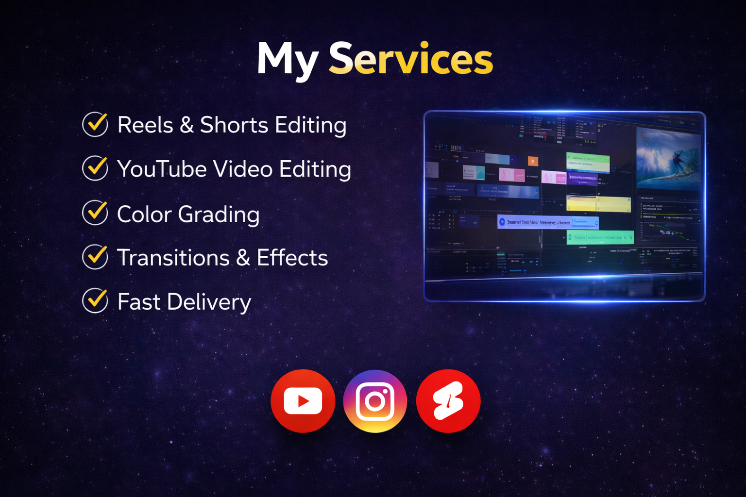 I can edit content for YouTube, Instagram, Reels, TikTok, and more, tailored to your style and platform requirements.
